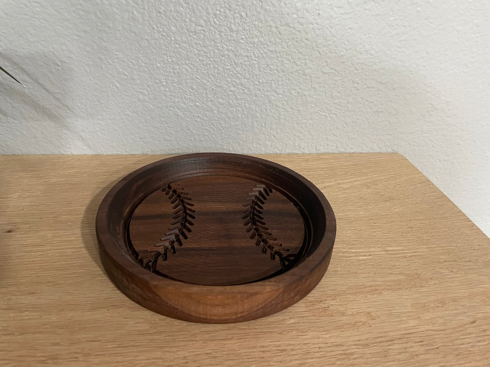 The Custom Carved catch all tray is great for the baseball fan in your life. Made from walnut it comes in 3 different sizes. Great for keys, change, every day carry items, and more. We also offer the ability to customize this piece with your name or a quote.